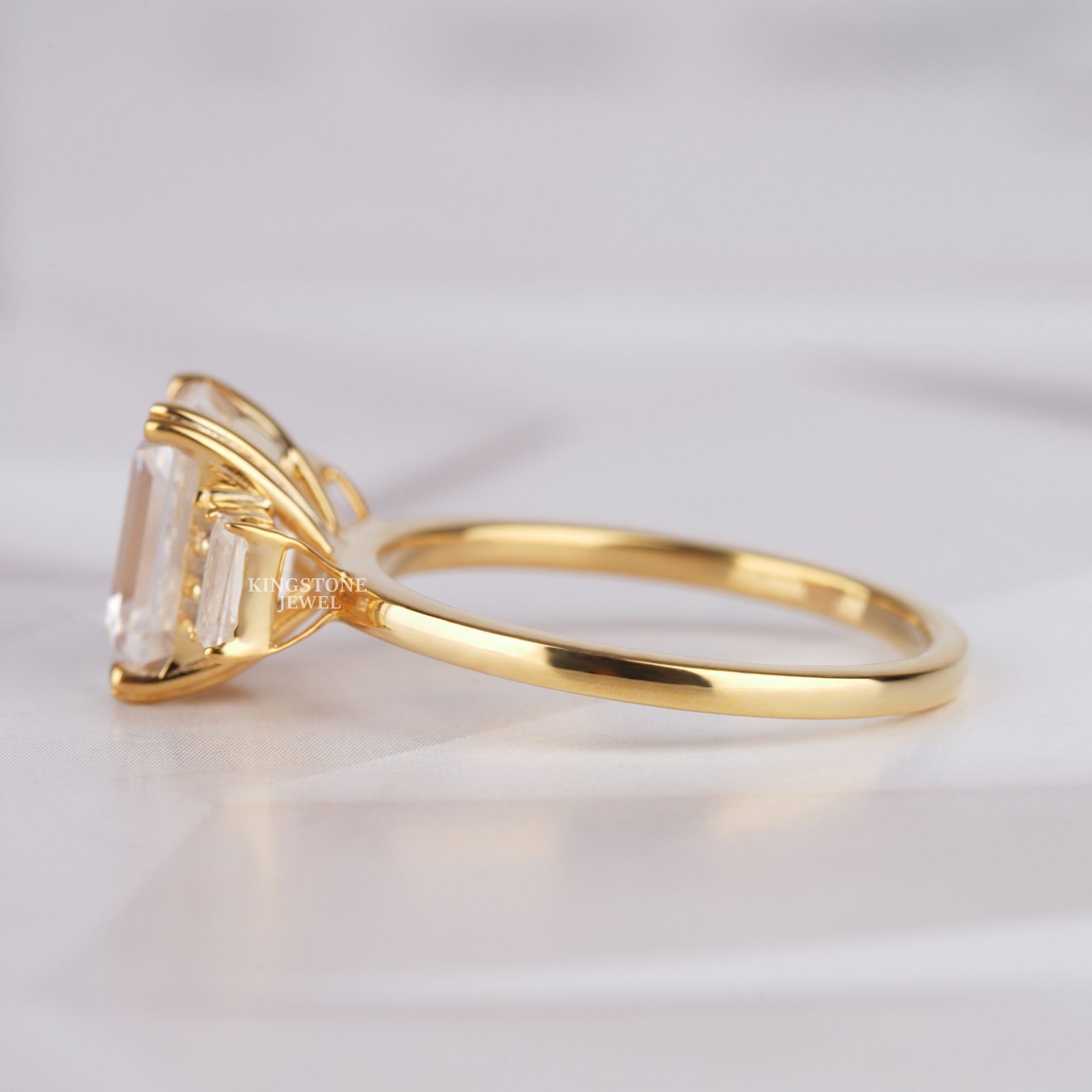 Emerald Cut Unique Lab Diamond 14K Solid Gold Ring
